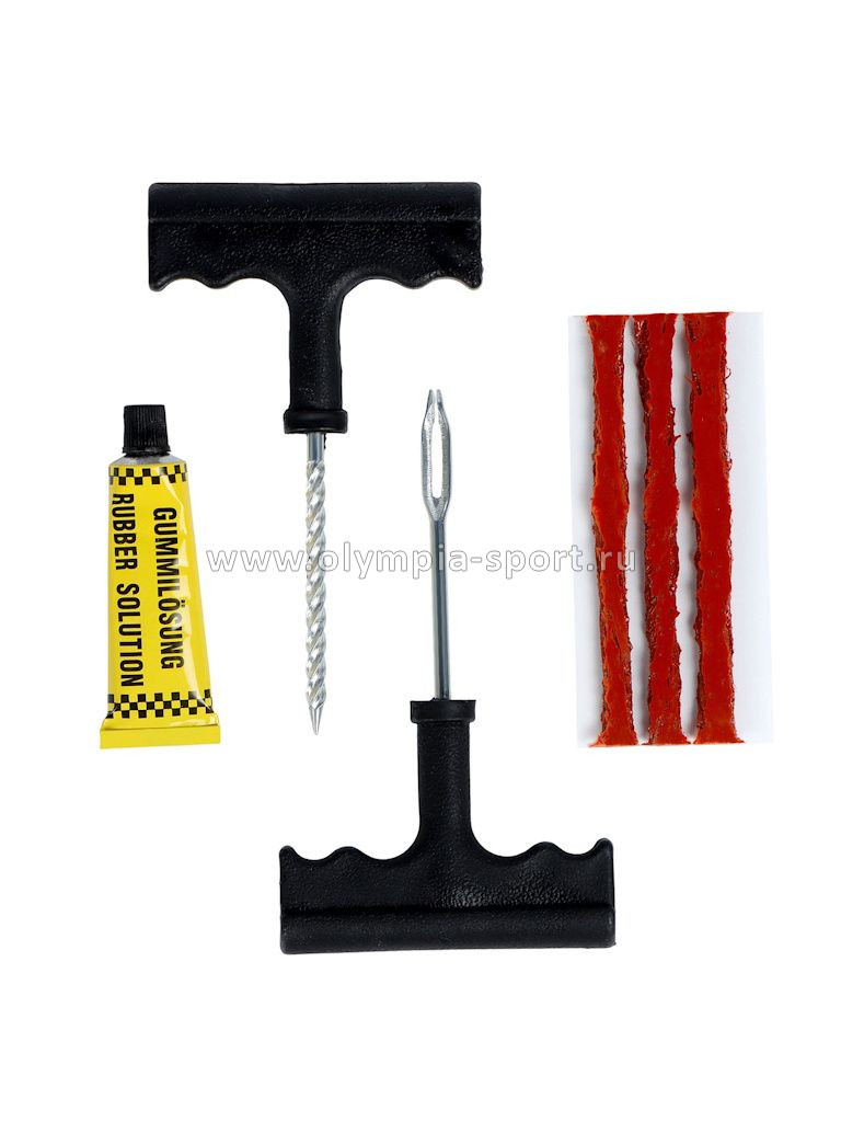 Набор-аптечка для ремонта бескамерных автомобильных шин незаменим в случае, если нужно самостоятельно устранить прокол или порез - в том числе, в дорожных условиях. С помощью входящих в комплект для ремонта компонентов - приспособлений для зачистки проколов и вставки жгутов, а также непосредственно жгутов-шнуров и тубы клея - можно оперативно восстановить целостность шины своими руками, не прибегая для этого к услугам шиномонтажа. Жгуты и клей для ремонта шин своими руками поставляются упакованными в блистер; универсальный компактный набор для ремонта проколов и боковых порезов бескамерных шин!